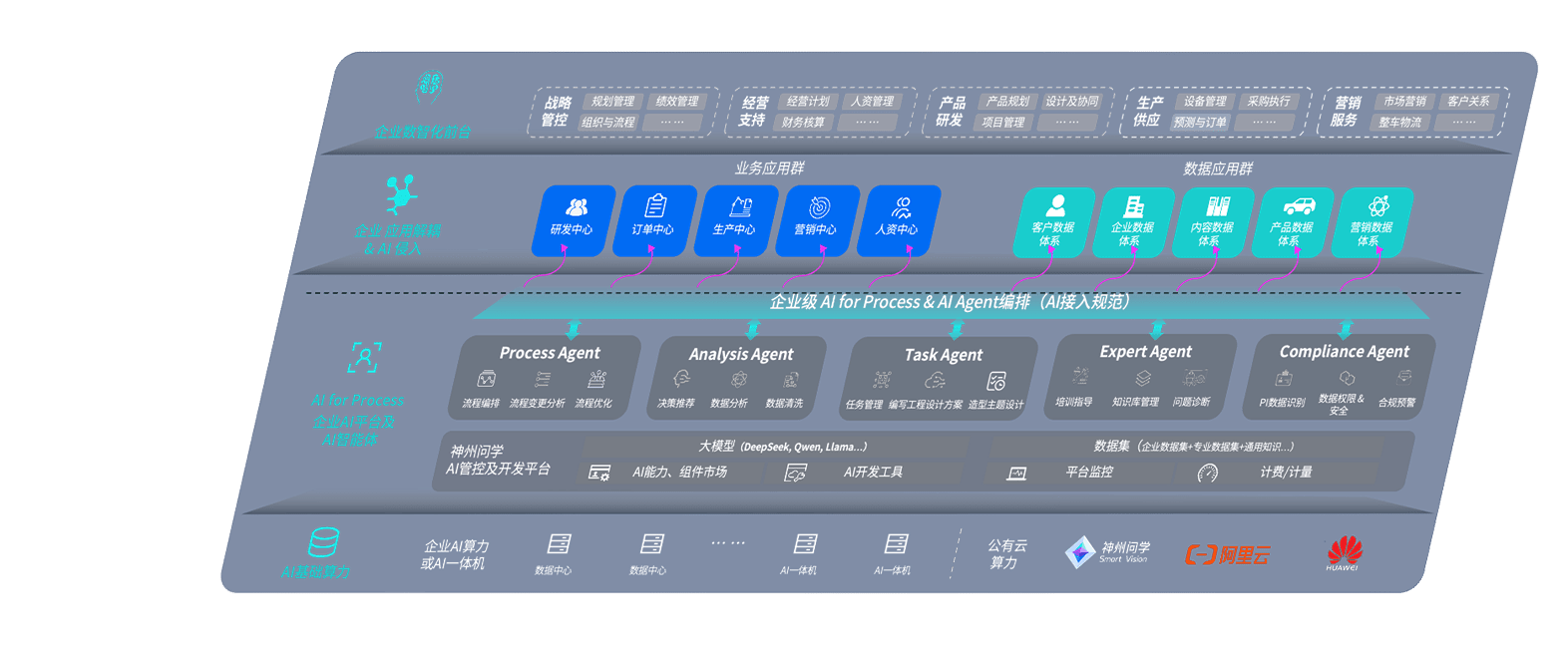 多多28问学智车解决方案是一套基于AI技术的汽车行业智能化系统,,,,覆盖从底层算力到顶层AI应用的全栈方案。。方案由算力层、、模型层和应用层组成:算力层,,,,方案支持多种一体机配置,,具备云端灵活部署、、、多云适配以及动态优化计算资源的能力;模型层,,,,多多28问学平台版提供了企业级AI应用一站式构建与管理平台,,,,支持基于后训练强化技术的汽车企业专属模型的训练、、、、评测和运营;应用层,,多多28问学DeepSeek版提供包括超级员工、、、、智能招采、、智能营销、、、、智能客服、、、、AI for BI等一系列解决方案,,,可助力汽车行业实现数字化转型,,让管理更智能、、、响应更敏捷。。。。